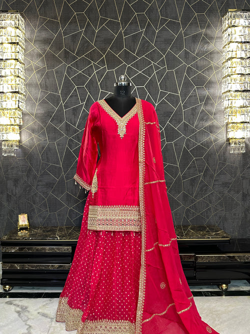 "Gulnaar" Elegant Pink & Gold Embellished Kurta Skirt Set
